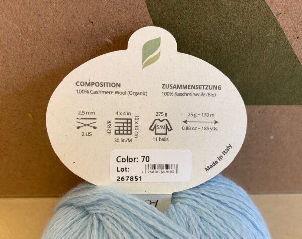 Kašmiirvill pärit Mongoolia kõrgmäestikust, lõng kedratud ja värvitud Itaalias.