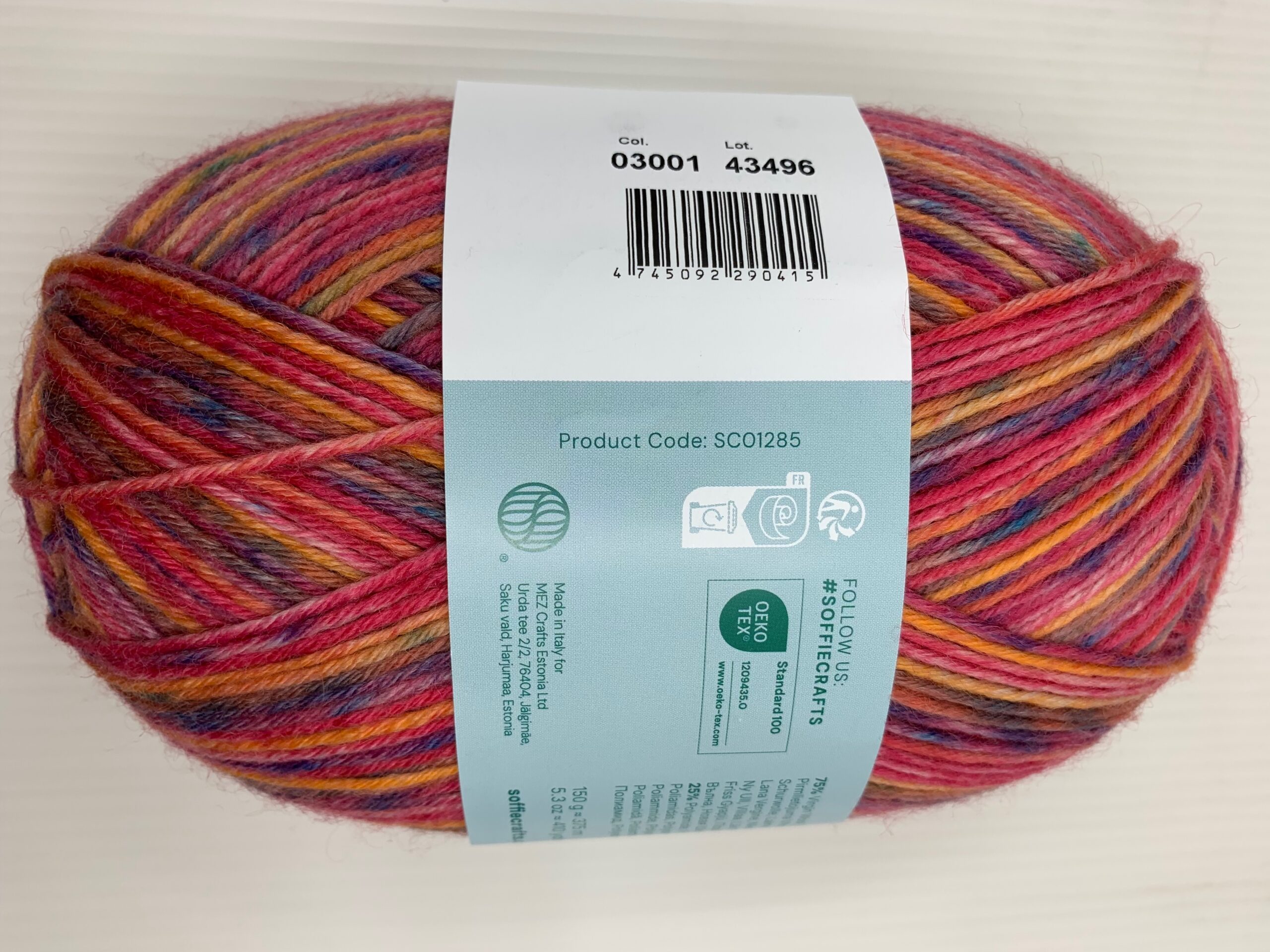 Soffie Crafts’i mustrit moodustavad ja triibulised sokilõngad on toodetud Itaalias.